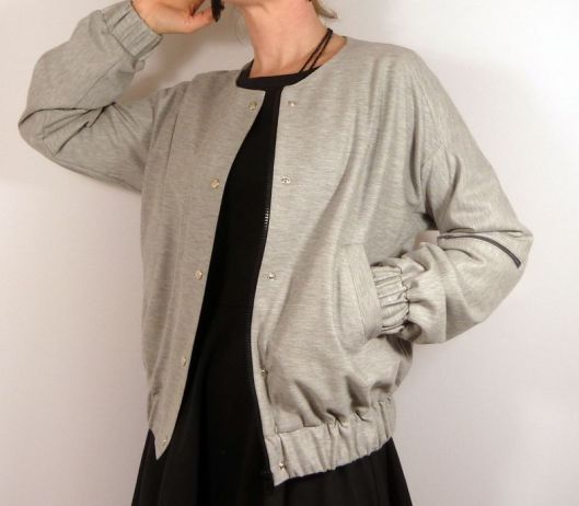 Idéal pour la demi-saison ce blouson. Réalisation impeccable avec de bonnes petites astuces à retenir comme le ruban en bas et les élastiques cousus ensemble. Il m’arrive de faire parfois le contraire, l’élastique étant trop large, je coupe à la largeur voulue le long d’une ligne d’élastique et je finis le bord coupé avec un surjet 3 fils comme ça on peut se faire toutes les largeurs possibles et imaginables ! Bon dimanche !