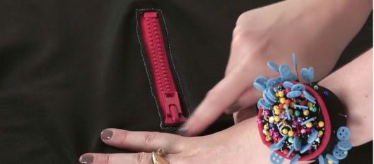 Sur les manches, il y a ce petit détail original : des poches zippées ! J’en ai mis sur les deux manches, tant qu’à faire !