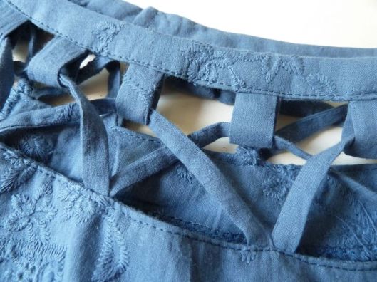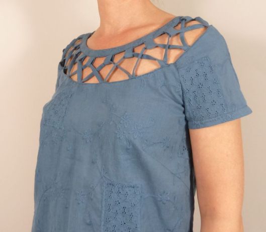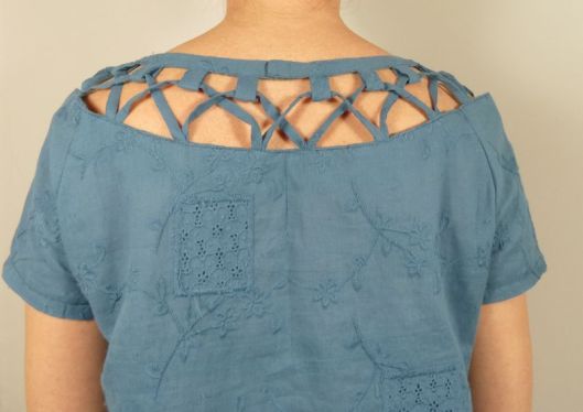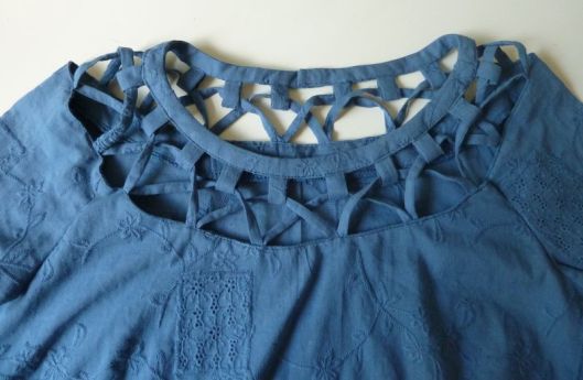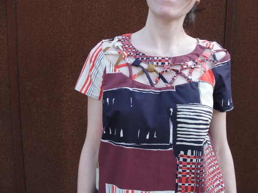 Après être tombé sur votre page je me suis lancée pour la réalisation de la minirobe 110 de Birda.. .Je suis débutante mais je voulais essayer… Je n’ai eu aucun souci pour coudre la robe ou même les rubans etc…mais après 2 semaines sur cette robe, je cale sur le haut…tout bêtement, je ne sais pas oû commencer…J’ai essayer 2 fois, la 1ere fois je me suis retrouvée avec des liens en plus (ça chevauchant sur les liens suivants (mi encolure du dos)…la 2e fois, il manquait « un trou » pour 2 liens…pfffff..J’ai mis de côté la robe, mais ça me fait de la peine parce que je prévoyait de refaire en Tunisie comme vous…