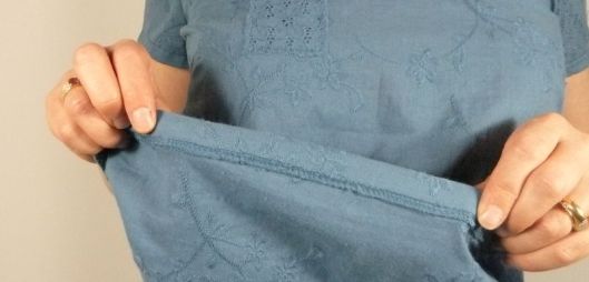 Les ourlets (bas + manches) sont finis simplement : ourlets simples surjetés puis piqués :