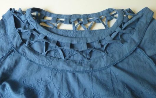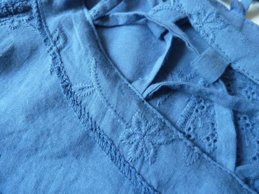 Oh du bleu ! Ça te va très bien cette couleur ! Quel dommage pour la mauvaise qualité du tissu, surtout après tant de travail … Le résultat est en tout cas ravissant, et merci comme toujours pour tes conseils et explications détaillés.
