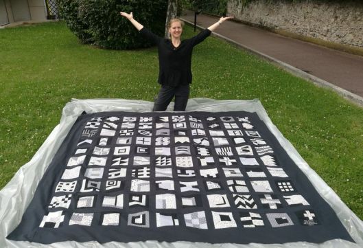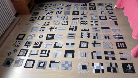 Ca y’est ! Tous les blocs ont été cousus les uns aux autres : les 100 blocs ont été réalisés dans les temps impartis, à savoir 100 jours et j’en suis plus que fière car ça a été un sacré challenge !