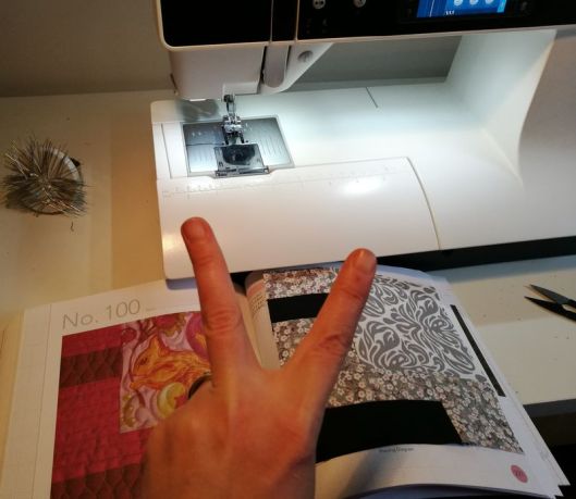 Etant chez mes parents, j’ai utilisé la machine à coudre de ma mère. Pas facile de passer d’une machine électronique à une machine manuelle. Mais elle a fait son job parfaitement ! J’avais oublié de prendre mon pied de biche de 1/4 de inches… mais cette machine permet de décaler l’aiguille vers la droite, donc c’était nickel !