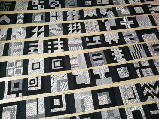 L’heure est donc à la récapitulation de l’acte I de cette aventure ! Et oui car l’acte II consiste à assembler le quilt à du molleton et à un tissu arrière… mais bon chaque chose en son temps !