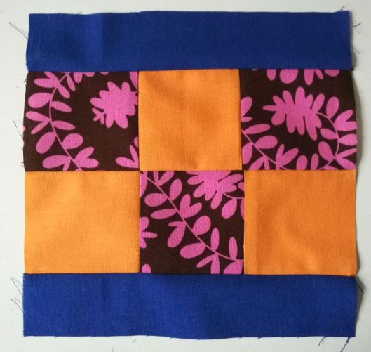 Le n°55 ! Si vous regardez bien j’ai cousu l’un des tissus à l’envers… Tant pis, il restera comme ça… pas le courage de le refaire… C’est aussi ça le patchwork !