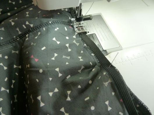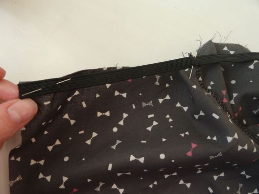 Je l’ai cousu au point zig-zag en étirant l’élastique au fur et à mesure.