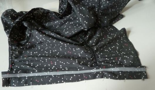 Pour ce qui est du bas des manches, la technique est la même, il faut juste fermer l’élastique en piquant ses extrémités ensemble avant de l’assembler au bas des manches.