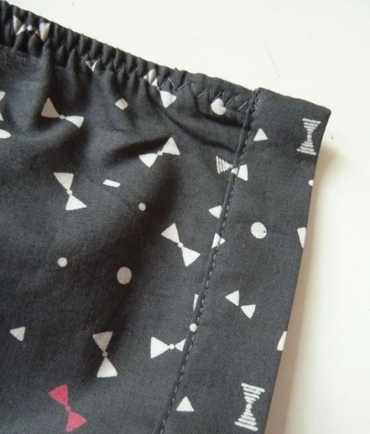 Pour les élastiques le problème c’est qu’on perd de l’élasticité en le cousant, pas toujours facile à évaluer de combien ! Et comme on a un arrondi on ne peut pas faire une coulisse avec rentré, ça ferait des grimaces