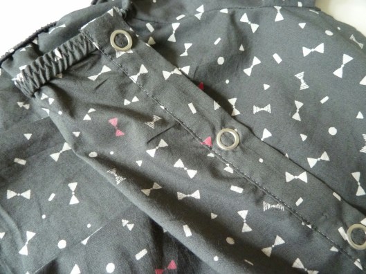 Il ne vous reste plus qu’à faire vos boutonnières ou à poser des pressions : c’est pour ma part ce que j’ai fait. Ce sont des pressions PRYM pour jersey mais qu’on peut tout à fait utiliser sur des tissus de ce type.