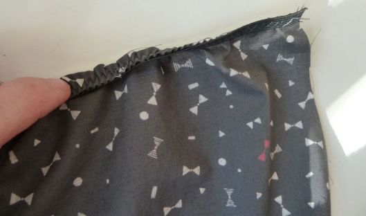 Je l’ai cousu au point zig-zag en étirant l’élastique au fur et à mesure.
