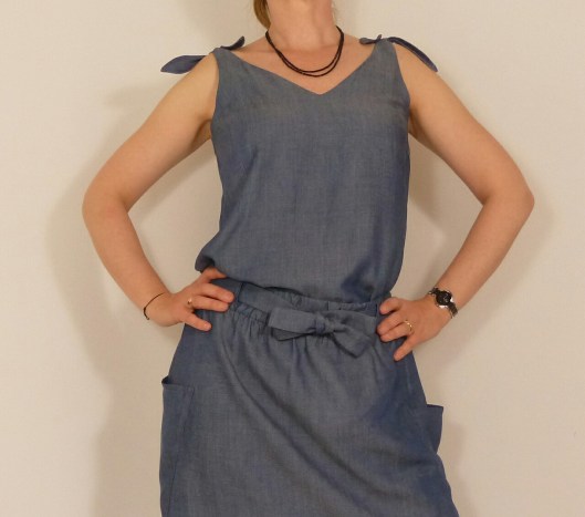 Ca ma rassure de voir que je ne suis pas la seule à « devoir tricher » 🙂 Le résultat est superbe, tu as une super tenue très modulable que tu porteras 100 fois plus qu’une combi c’est sûr ! C’est marrant, je viens de coudre le même genre de liens avec une petite robe Burda faite sur le même principe.