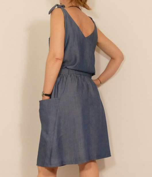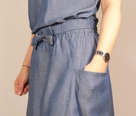 Voici la combi-jupe que j’ai réalisée ici dans le cadre de mon défi « Je couds ma garde-robe capsule 2017″.