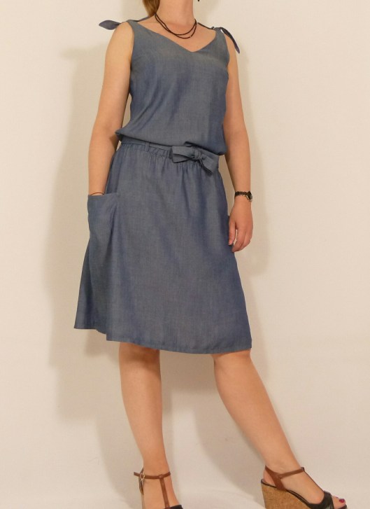 Le tissu, je l’avais : une viscose toute légère et toute fluide de couleur jean !