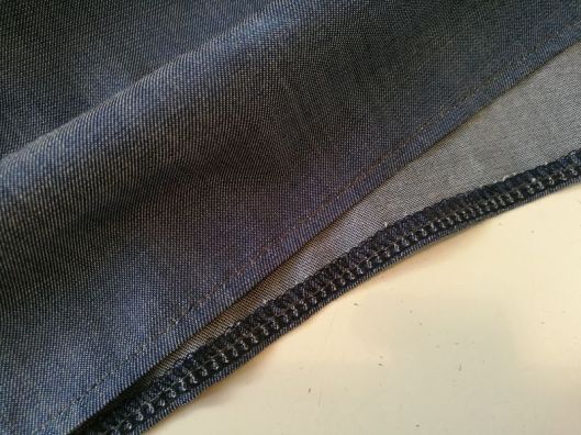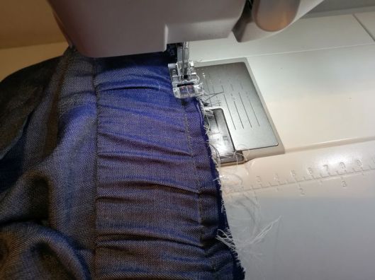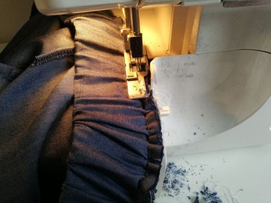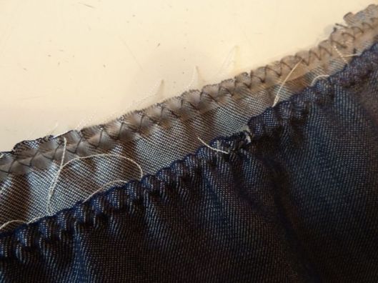 Et on vient surjeter les valeurs de couture en étirant la ceinture au fur et à mesure.