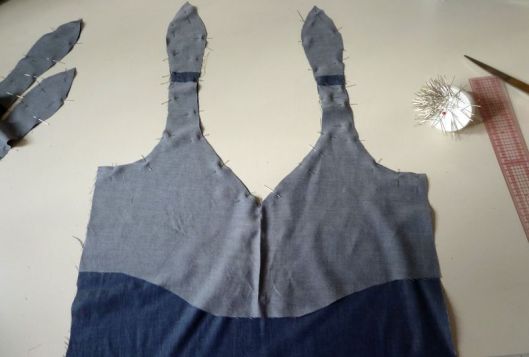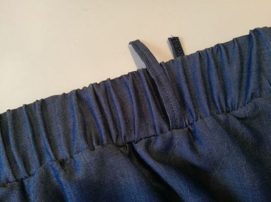 Il ne reste plus qu’à coudre l’extrémité du passant en haut de la ceinture. Pou ma part je les trouvais trop longs, je les ai donc redécoupés avant de les fixer sur la ceinture.