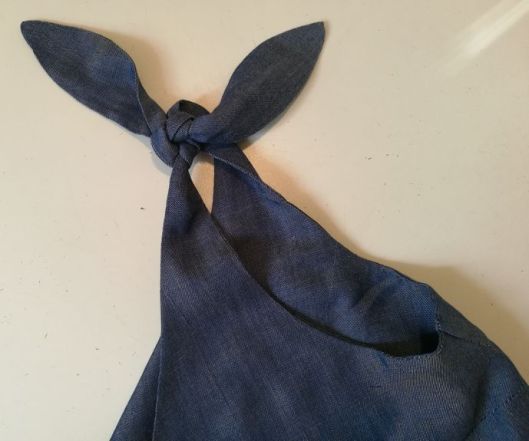Il ne vous reste plus qu’à coudre le lien qu’on viendra nouer au devant. Pour ma part, je le trouve trop court…