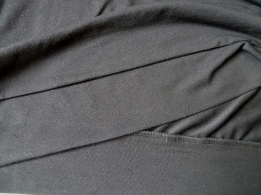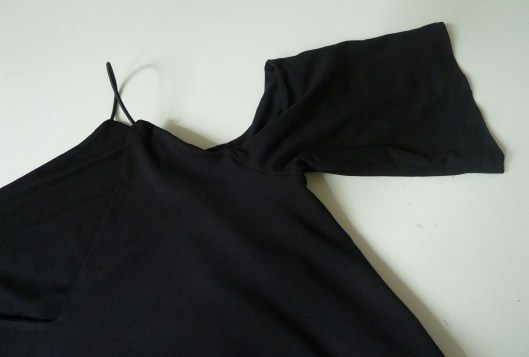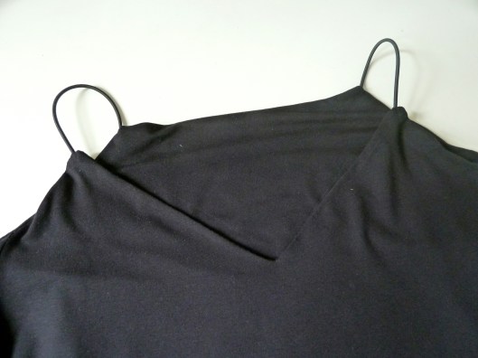 Côté explications, je ne les ai pas du tout suivies. J’ai préféré procéder à ma manière. Idem pour les finitions. Ce qui sous entend que je n’ai pas gansé le décolleté et que j’ai mis un élastique rond en guise de bretelles.