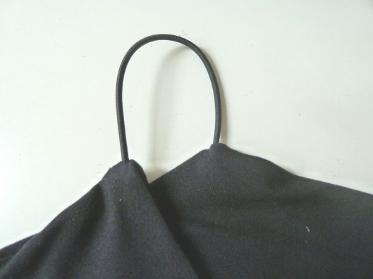 En guise de bretelles, j’ai donc choisi un élastique rond plutôt épais mais je ne vous conseille pas d’en faire autant car c’est au final difficile à coudre : ça ne passe pas bien du tout sous le pied de biche ! Préférez donc plutôt un élastique plat !