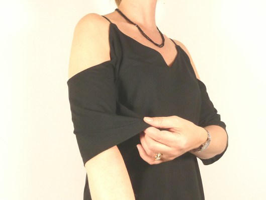 Je suis bien contente de le voir « en vrai » ce top, et comme toi je préfère la version sans volants. Les emmanchures sont vraiment originales et réussies!