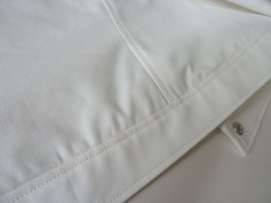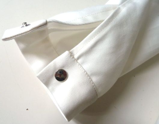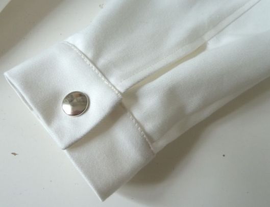 Le bas de manche est fini par une fente et des poignets fermés par un bouton-pression :