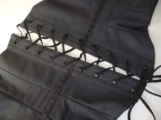 J’avais déjà tenté de coudre des baleines dans un bustier à basques de chez Burda mais le résultat n’était pas très concluant. J’avais également suivi un stage pour coudre un corset et ça avait d’ailleurs été une sacrée belle expérience.