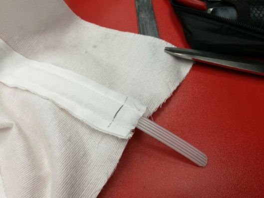Dans mon projet ici, je voulais quelque chose de plus simple avec des baleines en plastique rigide. Comme je ne savais pas trop comment m’y prendre, j’ai donc fait les choses comme il me semblait : autant dire que j’ai fait quelques erreurs… Je ne m’étendrais donc pas ici sur le sujet…