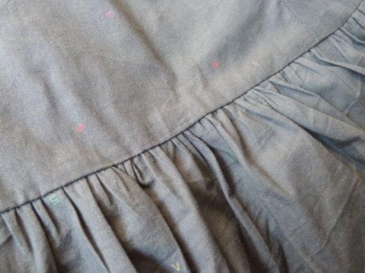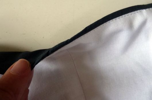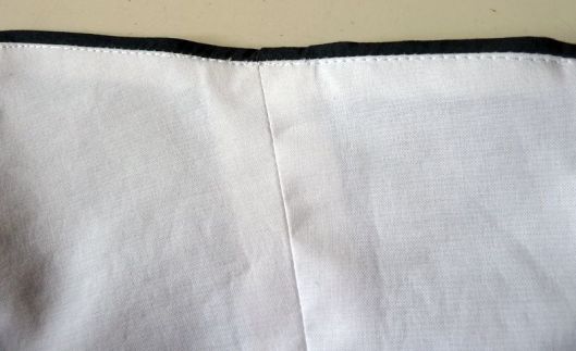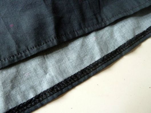 Le bas de la doublure s’arrête au niveau de la partie froncée du tissu extérieur. J’ai réalisé un double rempli en guise d’ourlet pour la doublure :