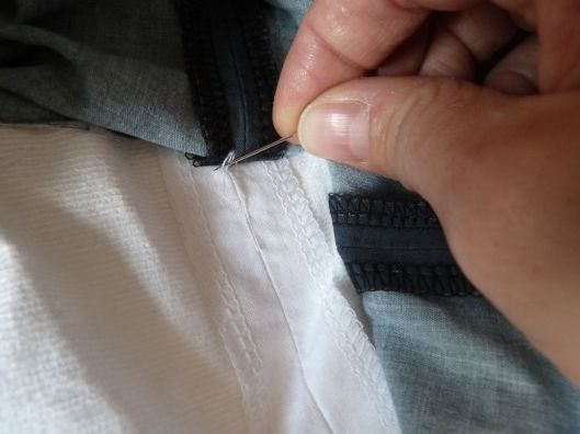 J’ai ensuite maintenu les deux épaisseurs par quelques points invisibles faits sur l’intérieur :