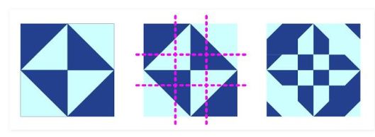 On vient tourner les carrés situés dans les angles d’1/2 de tour et d’1/4 de tour pour le carré central :
