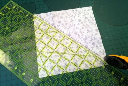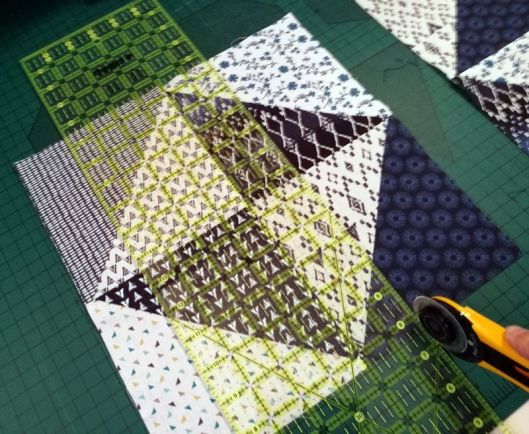 On vient ensuite couper notre bloc à 2 inches de part et d’autre de la couture du milieu :