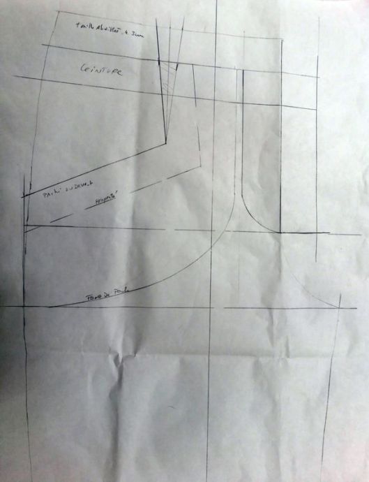 Nous sommes parties d’un gabarit de base en taille 38 et nous avons apporté au patron les modifications que nous souhaitions…