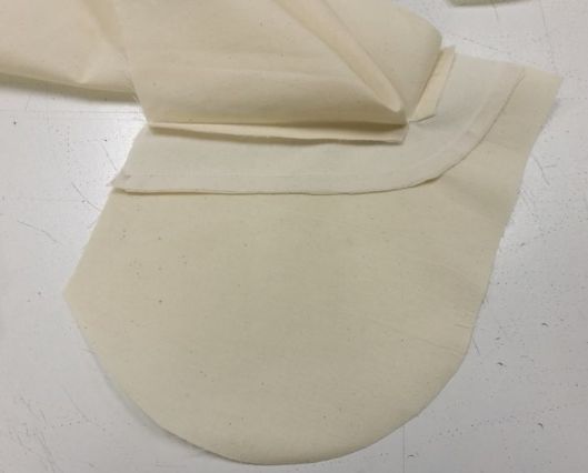 Vient ensuite la couture de l’entrejambe puis de la pose de la ceinture. En ce qui concerne la ceinture, la parementure est fixée en cousant dans le sillon de la ceinture :