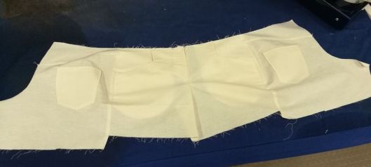 On passe ensuite au dos avec l’empiècement et les poches plaquées, pas de difficultés particulières…