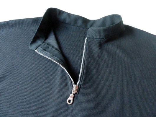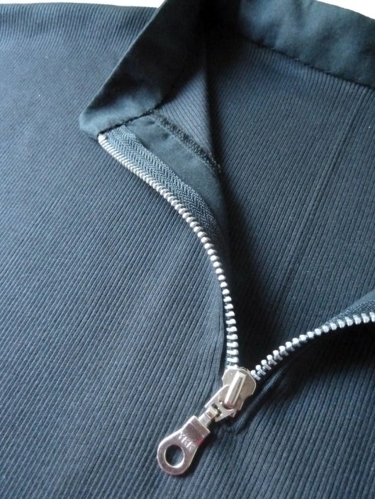 Pour poser ce zip, j’ai utilisé la technique des fentes passepoilées zippées. Il y a donc une parementure visible sur l’intérieur :
