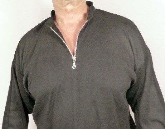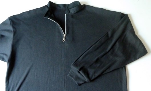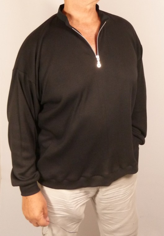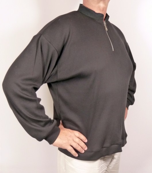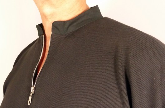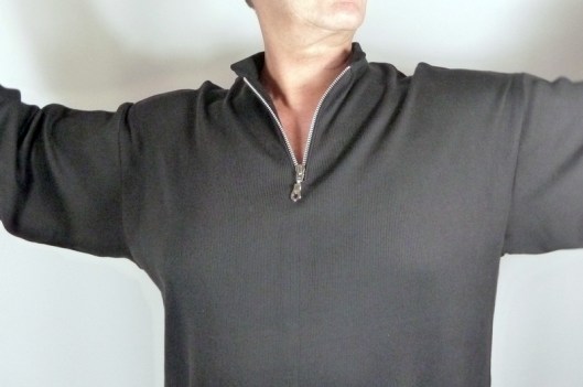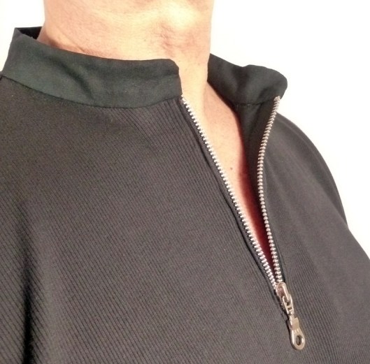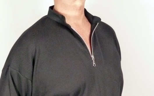 Le cahier des charges était très précis : et oui, Monsieur sait ce qu’il veut… Il voulait un sweat large façon polo, avec des emmanchures basses, des manches larges et un col mao… voilà voilà…