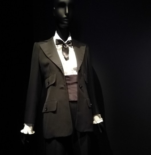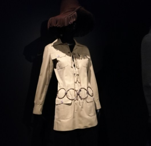 On y retrouve bien évidemment les pièces mythiques de ses collections, ci-dessous avec le smoking (1966) qui devient l’apanage des femmes émancipées et l’incontournable saharienne (1968) qui devient un véritable manifeste unisexe :