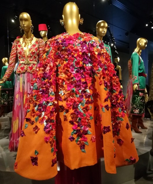 La salle « Exotismes » : YSL s’inspire du Maroc, de l’Afrique, de la Russie, de l’Espagne ou encore de l’Asie : des couleurs vives, des formes et des étoffes venues d’ailleurs.