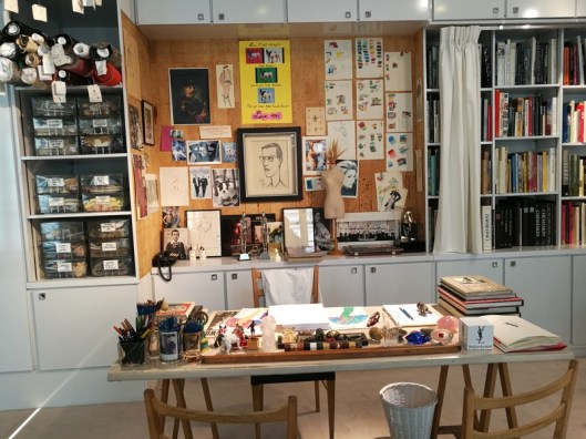 Le studio ! On pénètre dans le coeur de la maison de couture avec ici la pièce toute en longueur dans laquelle a travaillé pendant 28 ans YSL. Pour ma part, cet espace m’a totalement fait palpiter ! C’est émouvant, non ?! On rêve tous un jour de découvrir ces lieux de création… et bien voilà, c’est fait !