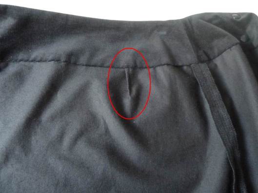 Les fameux plis placés sur le côté droit (devant et dos) :