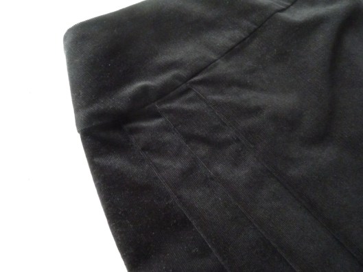 De bien belles finitions. Dommage pour les plis qui s’ouvrent. Peut être il aurait fallu prendre la taille 40/42 pour les hanches. Sur un jupe avec plis le tour de bassin fini plus aisance se mesure plis fermés.