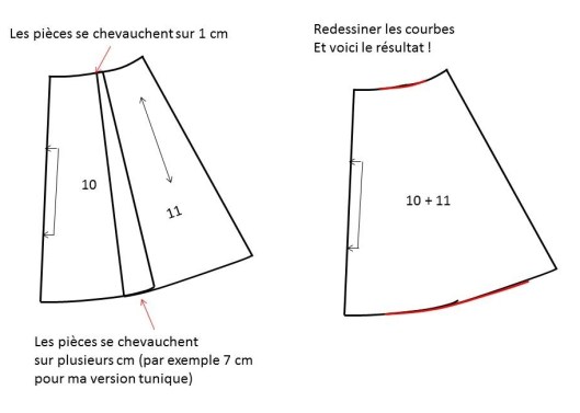 3/ Pour la jupe, j’ai choisi la version C, c’est à dire la jupe évasée mais que j’ai raccourcie de plusieurs centimètres pour obtenir une tunique plutôt qu’une robe.