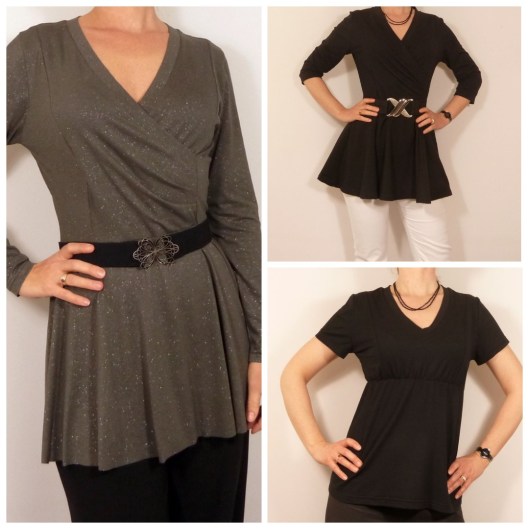 Ce patron vous le connaissez par cœur, il propose trois corsages et trois jupes différentes (27 variations possibles) dont voici les schémas techniques :