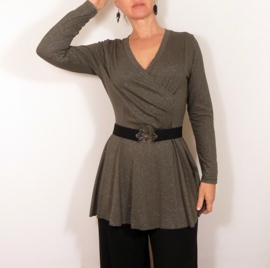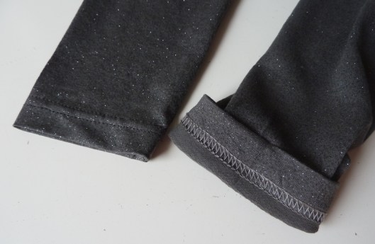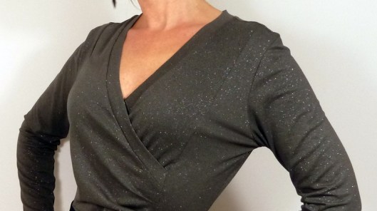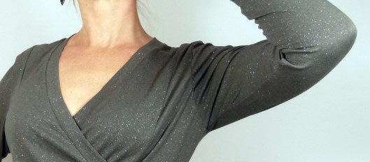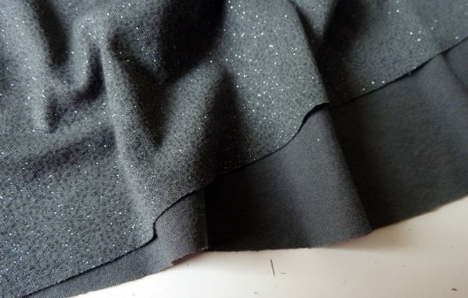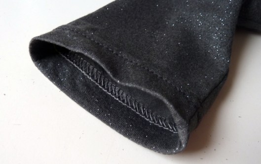 Aujourd’hui ce sera une version pailletée grâce à ce jersey acheté chez Stop tissus 3€ le mètre ! Oh miracle, au lavage, pas de soucis : pas de rétrécissement et les paillettes sont bien restées en place ! OUF !