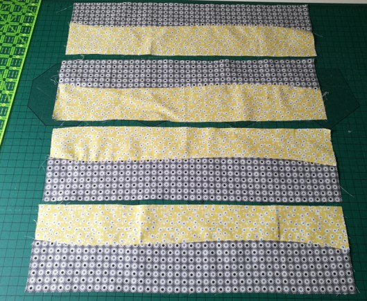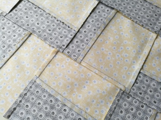 Il convient ensuite de coudre les bandes entre elles, en assemblant une bande claire avec une bande foncée :
