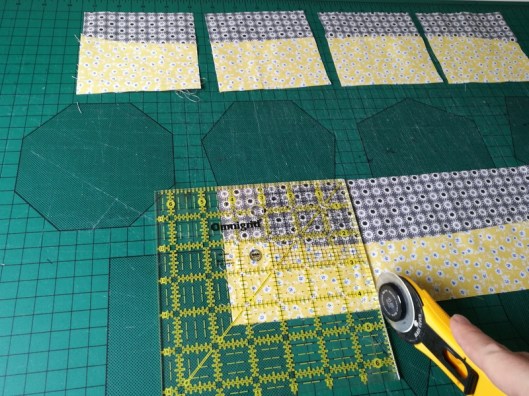 Vient ensuite l’étape équerrage ! Il faut couper correctement pour obtenir des carrés aux bonnes dimensions :