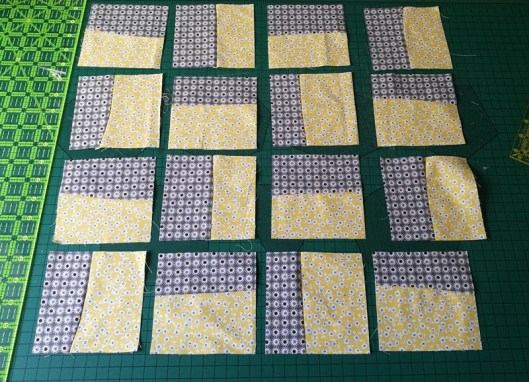 On vient ensuite disposer les carrés d’une certaine manière pour obtenir le motif souhaité. Ne regardez pas la photo ci-dessous, je me suis trompée !