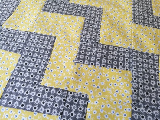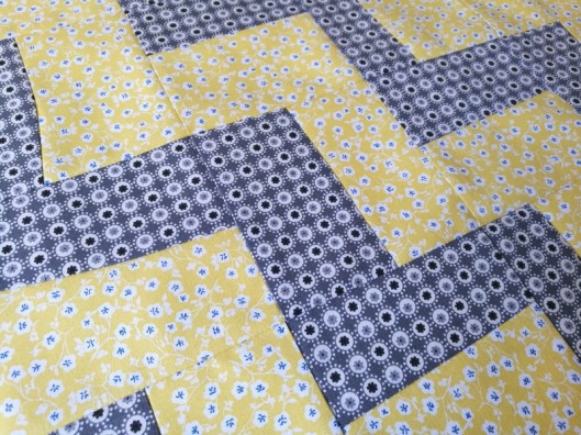 Le bloc que notre Reine a choisi est le motif « rail fence » qui veut dire la clôture ou le zig-zag je pense… Pour ce faire, elle a demandé l’autorisation à Sujata Shah pour que nous puissions toutes réaliser le bloc issu de son livre « Cultural Fusion Quilts » :
