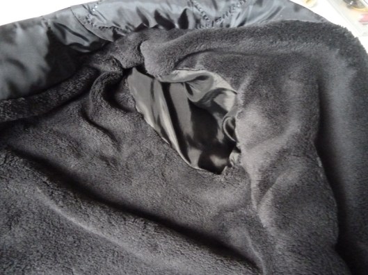 J’ai voulu en effet doubler les manches avec mon teddy polaire (puis par-dessus de la doublure classique), mais j’étais vraiment trèèèèèèèèèèèèèès à l’étroit ! J’ai donc décousu mes manches et j’ai remplacé ma polaire par un tissu de doublure classique de type bemberg.