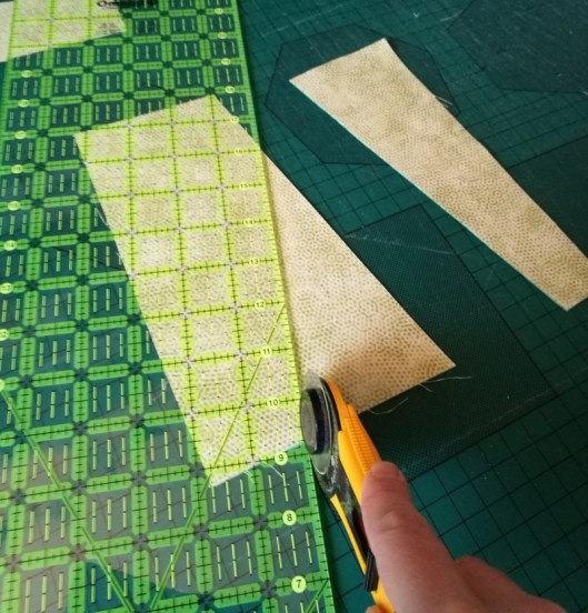 Une fois la partie quilting réalisée (ouf !), j’ai coupé l’excédent de molleton et de tissu arrière :
