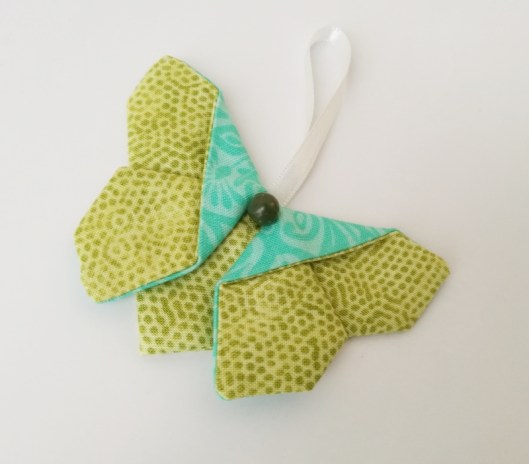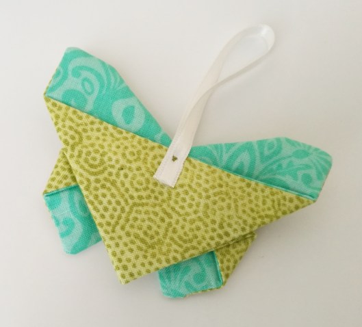 Et puis je n’ai pas pu m’empêcher de coudre un petit papillon : Annie en a en effet offert deux à chacune des Reines ! Celui-ci complète ainsi sa collection :